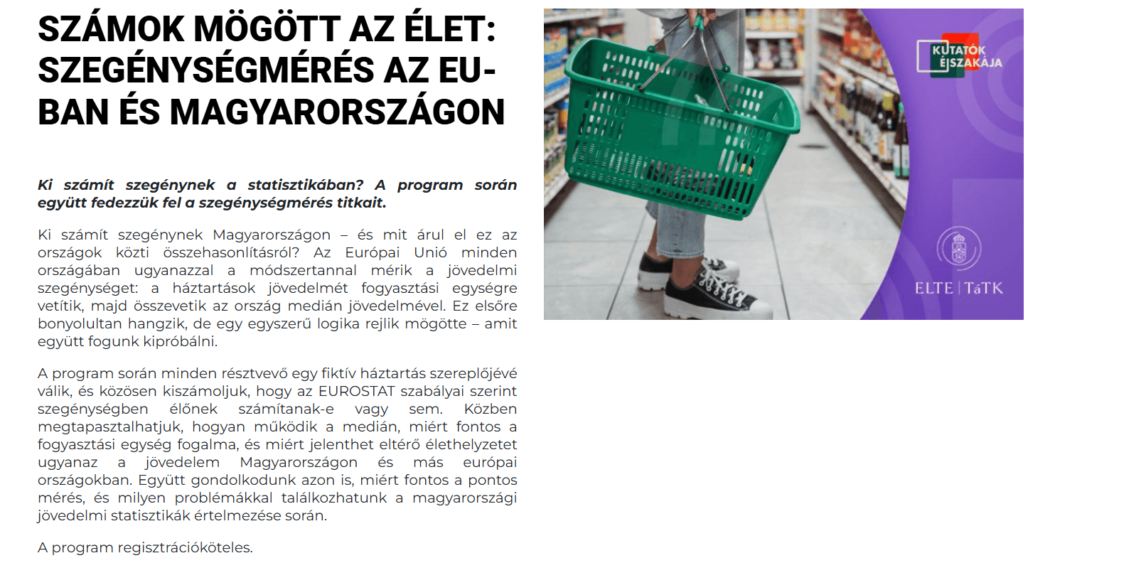 Workshop at Researchers’ Night: Life Behind the Numbers – Measuring Poverty in the EU and Hungary